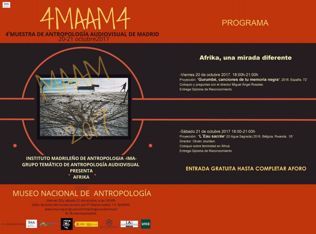 La Cuarta Muestra de Antropología Audiovisual es organizada por el Instituto Madrileño de Antropología (IMA) y el Museo Nacional de Antropología, con la colaboración de la UAM, la UCM, la UNED, Antropología en Acción ONGD y AntropoDocs & Films. El acceso a las proyecciones es libre hasta completar aforo.